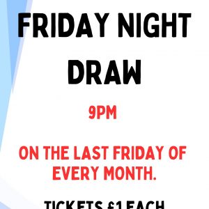 Friday Night Draw FRIDAY NIGHT DRAW ON THE LAST FRIDAY OF EVERY MONTH. TICKETS £1 EACH FROM THE BAR 31 Oct 21:00 - 21:30