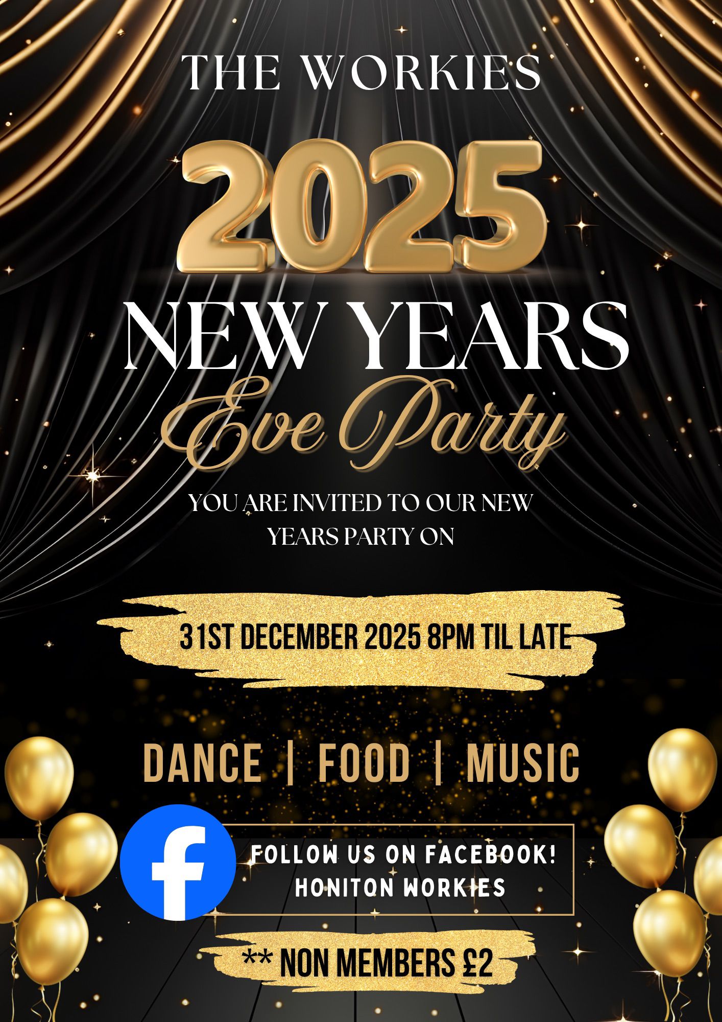 Home Events - Honiton Workies Music Party Special Events New Years Eve New Years Eve NEW YEARS Eve Party YOU ARE INVITED TO OUR NEW YEARS PARTY ON 31ST DECEMBER 2025 8PM TIL LATE DANCE * FOOD * MUSIC + Add to Google Calendar + iCal / Outlook export The event is finished. Date 31 Dec 2025 Expired! Time 20:00 - 20:00 Category Music Party Special Events Share this event